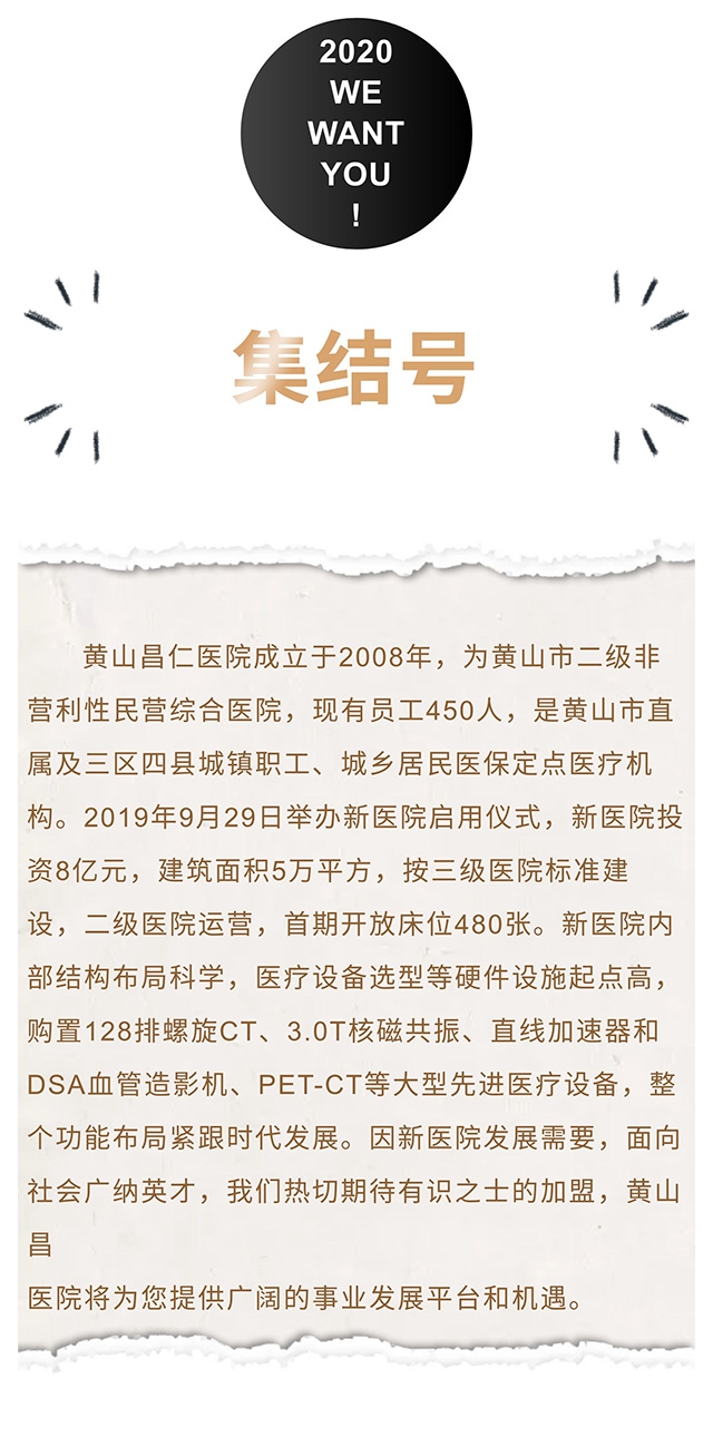 黃山昌仁醫(yī)院2018年度招聘公告...